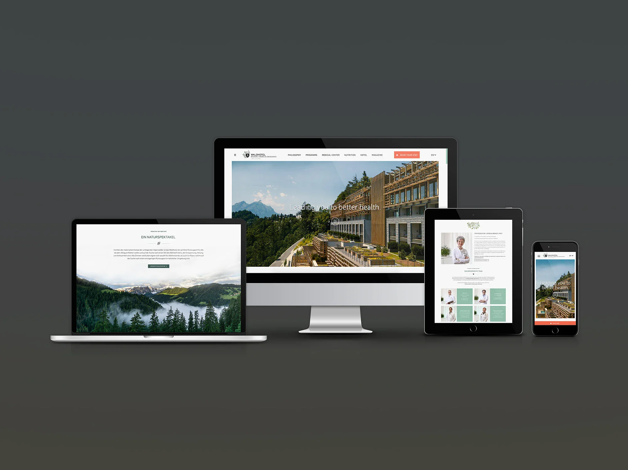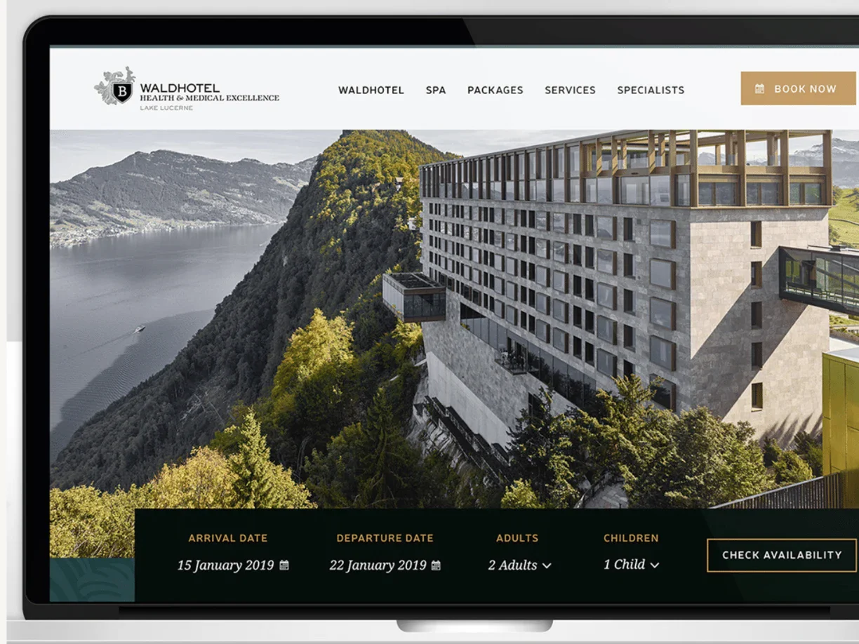 So haben wir zusammen mit dem Marketingteam des Waldhotels eine umfassende, mobil ausgerichtete, benutzerzentrierte Website mit Fokus auf Usability und einer umfassenden Strategie für digitales Marketing erstellt. Das Designteam ließ sich vom wunderschön kuratierten, natürlichen Interieur inspirieren und ließ ein klares Layout für die ruhige Raffinesse des Hotels in einem kompakten, übersichtlichen Design sprechen.
