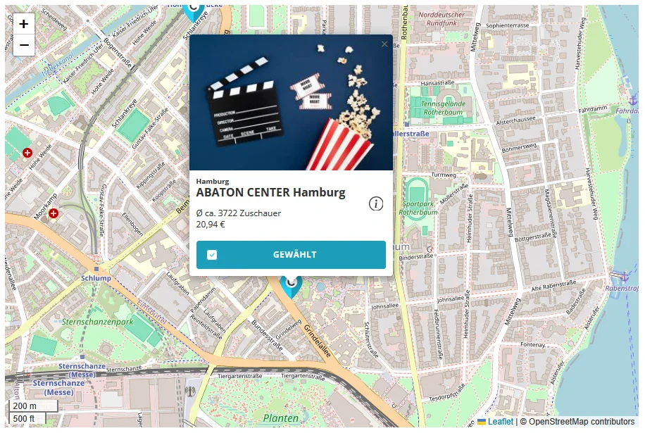 - GEO-Daten basierte Buchung von Kinos
